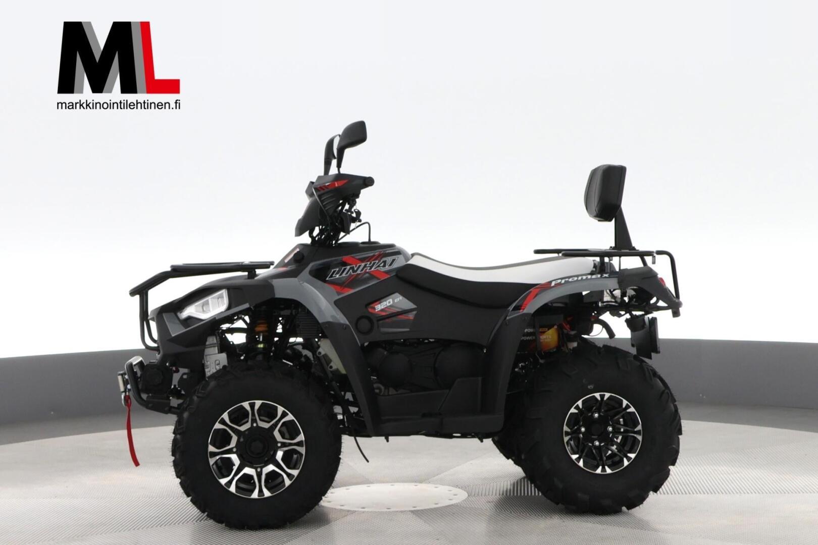 320 Promax EFI perustuu kestosuosikki Linhai 300 -malliin, mutta on käynyt läpi kattavan faceliftin niin tekniikan, kuin ulkoasunkosalta. Linhai 300 -sarjan mönkijöiden tuonti Suomeen on aloitettu yli kymmenen vuotta sitten, ja suurin osa laitteista on edelleen aktiivisessa käytössä. 320 Promax on luotettava kumppani pihanhoitoon tai lumitöihin. Mönkijän voimanlähteenä toimii Linhain varmatoimiseen tekniikkaan perustuva nestejäähdytteinen tasapainoakselilla varustettu nelitahtimoottori. Voimansiirto on toteutettu helppokäyttöisellä CVT-vaihteistolla, josta löytyy myös alennus- ja peruutusvaihde.