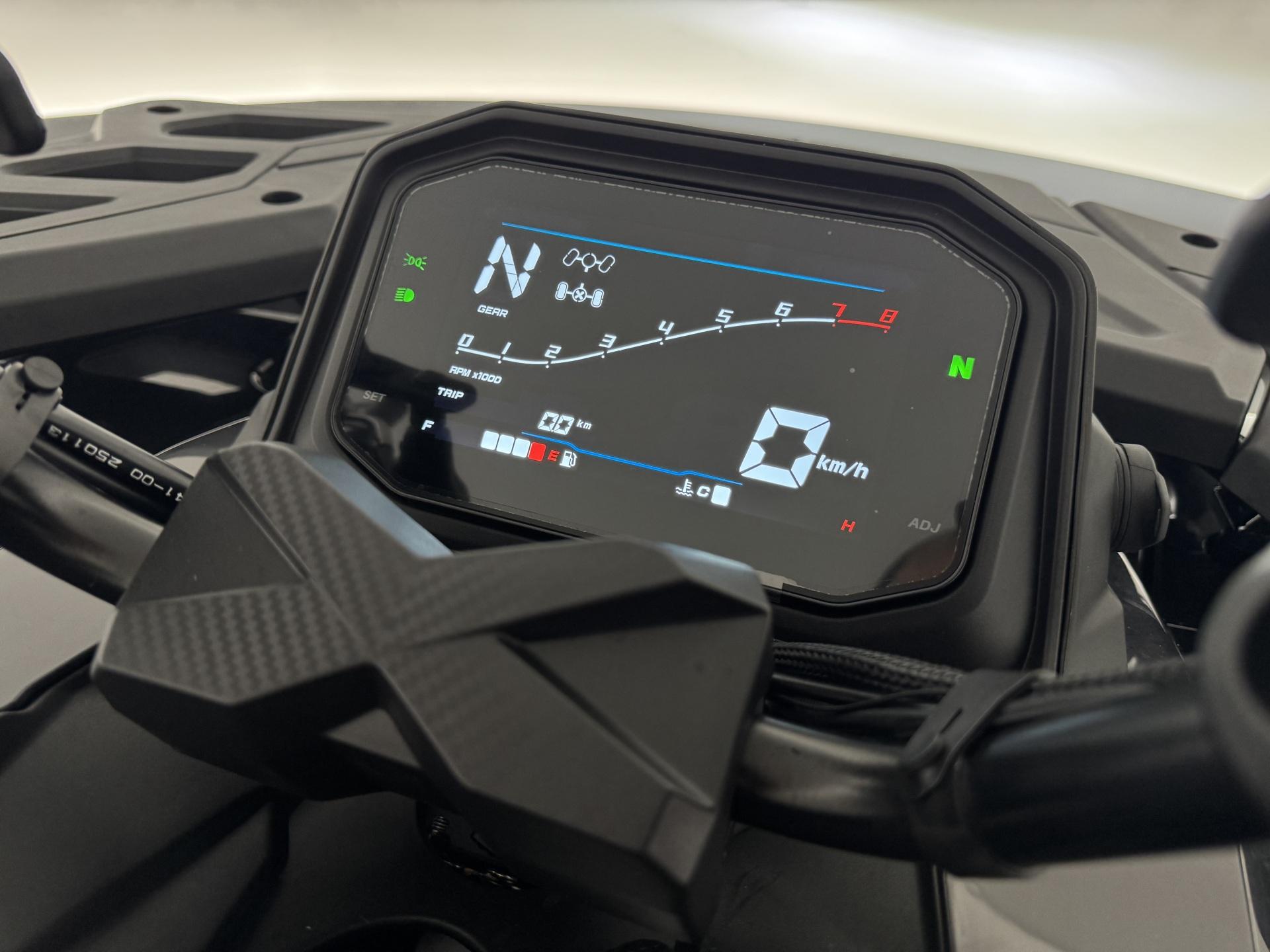 * Moderni 7 tuuman TFT-näyttö vaihtaa automaattisesti päivä- ja yötilan valaistusolosuhteiden mukaan. Se näyttää selkeästi kaikki tärkeät tiedot, kuten nopeuden, kierrosluvun, moottorin lämpötilan ja polttoainemäärän. Näytössä näkyy myös tieto vaihteen ja vetotavan valinnasta.