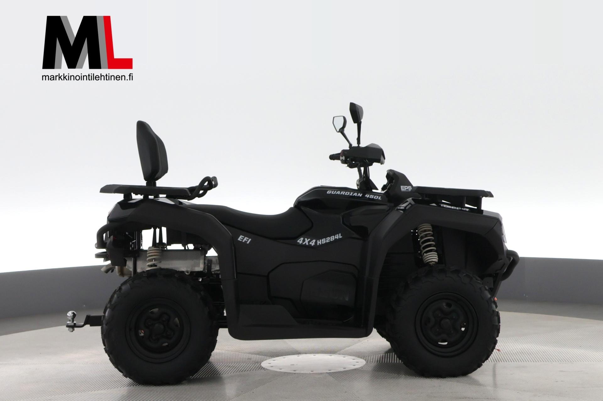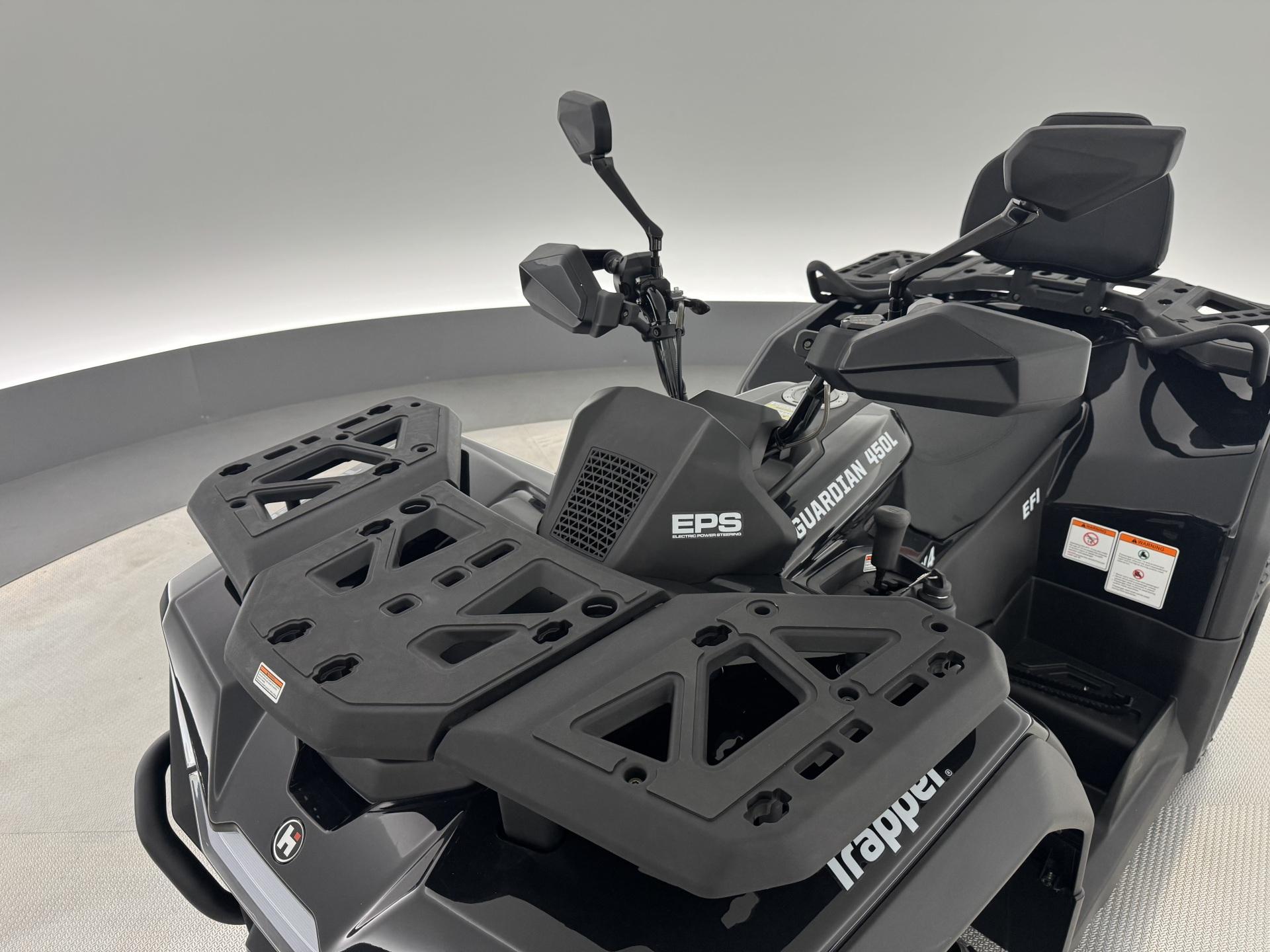 Trapper Guardian 450L on erinomainen valinta monipuoliseen käyttöön. Tämä malli tarjoaa erinomaisen suorituskyvyn ja mukavuuden, mikä tekee siitä ihanteellisen sekä työ- että vapaa-ajan käyttöön. Trapper Guardian 450L -mallissa on 400cc 4-tahtinen, 1-sylinterinen SOHC-moottori, joka tuottaa 31 hevosvoimaa 7000 rpm:ssä ja 32 Nm vääntöä 6000 rpm:ssä. Tämä malli on rekisteröity kahdelle henkilölle. Lisäksi siinä on kahvansuojat ja matkustajalle selkänoja. Trapper Guardian 450L eps -mallissa on ohjaustehostin, joka helpottaa ohjausta ja parantaa ajomukavuutta. Tämä ominaisuus tekee mönkijän käsittelystä kevyempää ja tarkempaa, erityisesti ahtaissa tiloissa ja haastavissa maasto-olosuhteissa. Ohjaustehostin on suunniteltu vähentämään kuljettajan rasitusta ja parantamaan ajokokemusta.