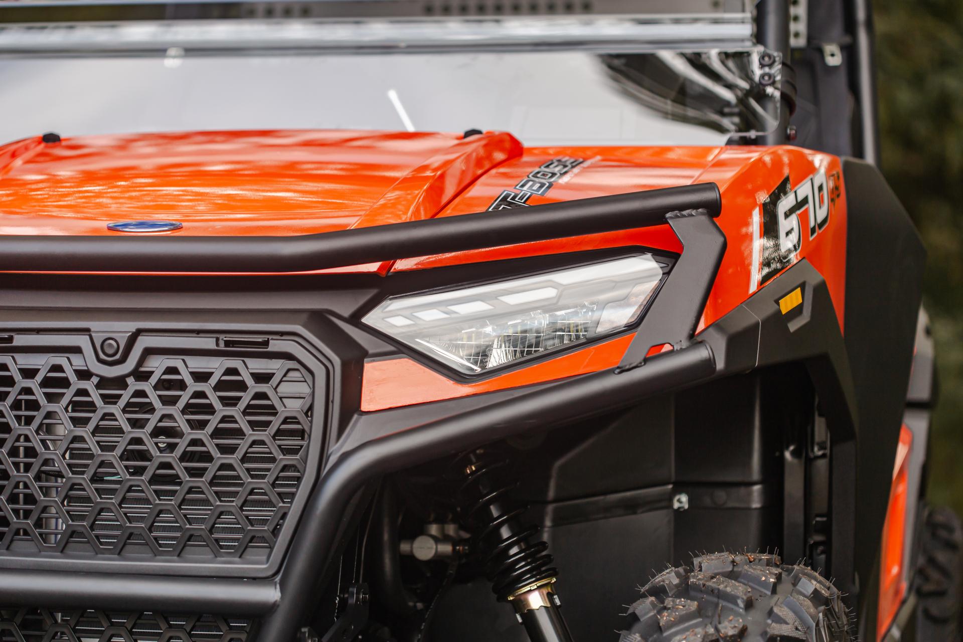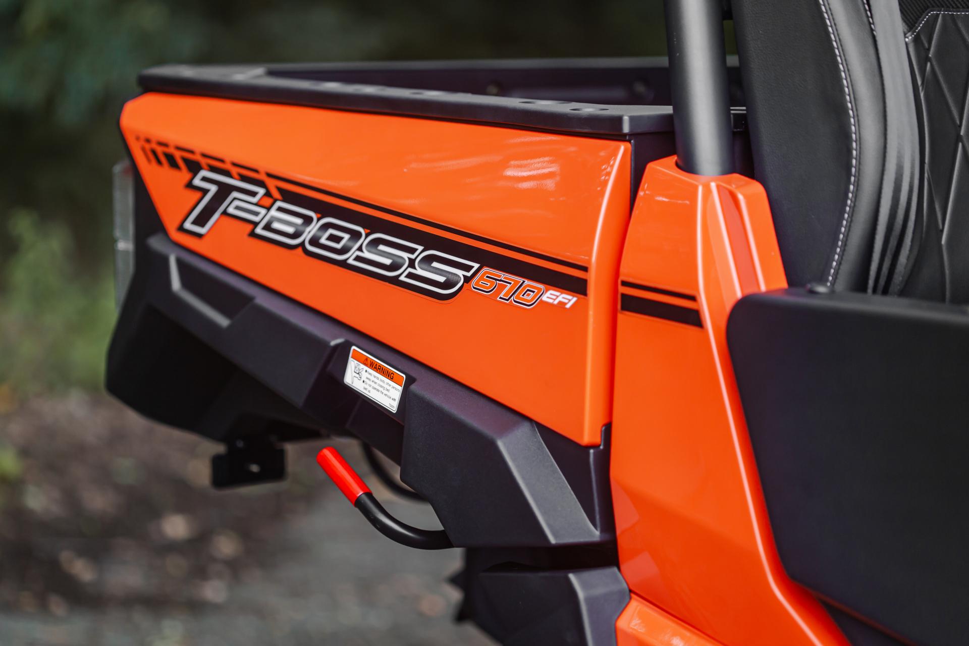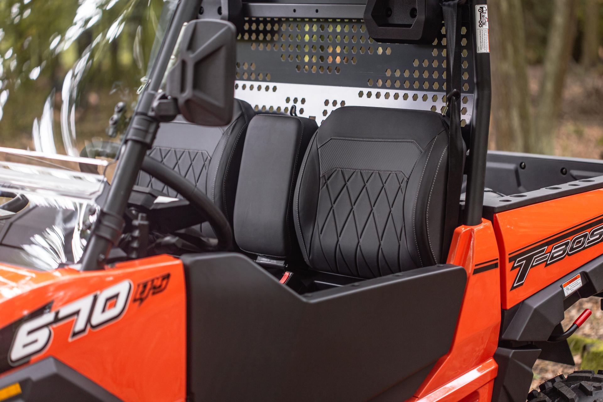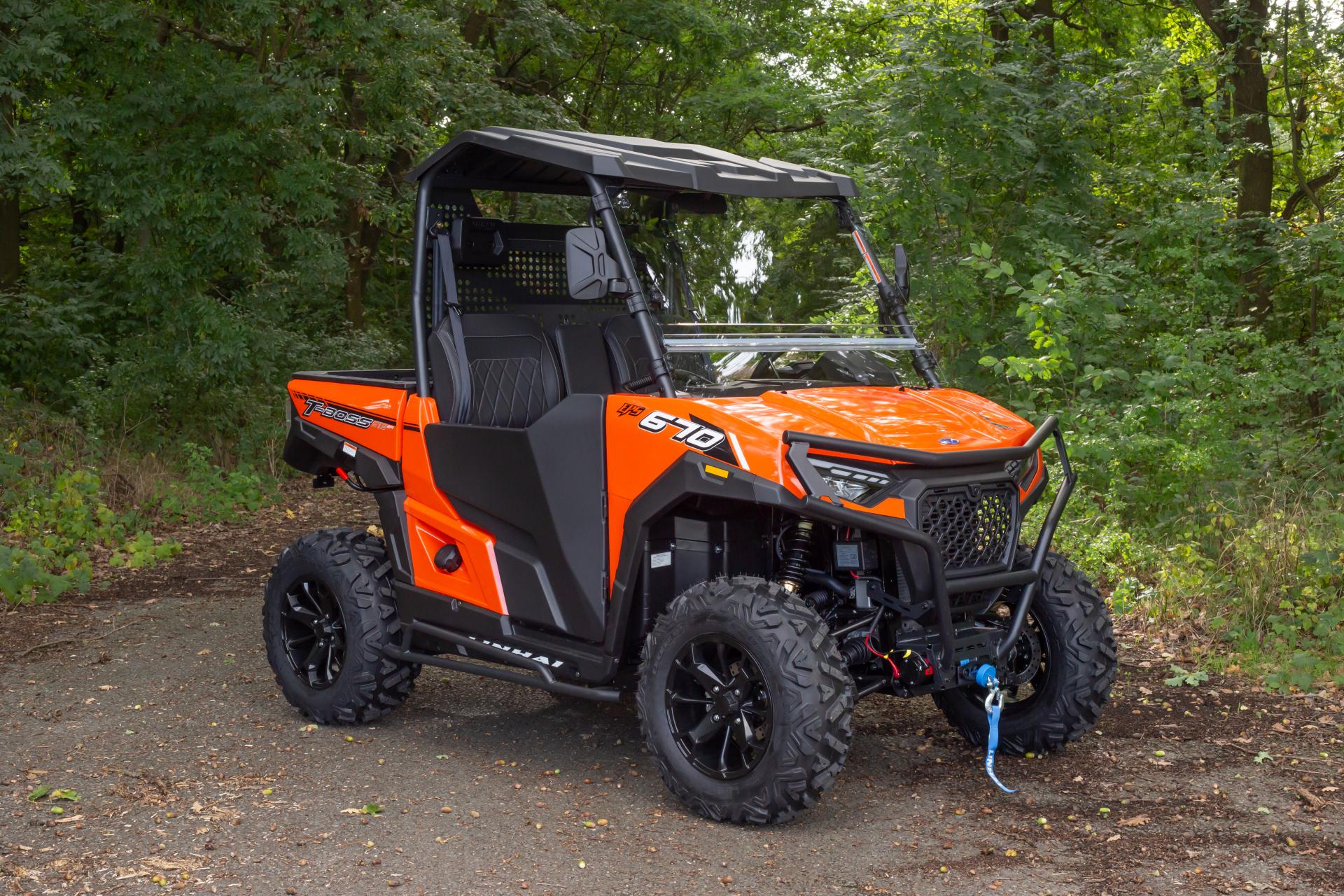 T-Boss 670 EPS edustaa hyötykäyttöön tarkoitettujen UTV-ajoneuvojen uusinta sukupolvea, jossa yhdistyvät moderni ja vankka muotoilu sekä korkea käytännöllisyys. Se tarjoaa luotettavaa suorituskykyä ja polttoainetehokkuutta, ja on valmis käyttöön maataloudessa, metsätöissä, rakennustyömailla sekä kunnallisissa palveluissa. Sähköinen ohjaustehostin (EPS) takaa vaivattoman hallittavuuden kaikissa tilanteissa, ja tehokas moottori tarjoaa riittävästi voimaa perävaunujen vetämiseen ja raskaiden lisälaitteiden käyttöön. Kestävät puoliovet ja tilava ohjaamo huolehtivat matkustajien turvallisuudesta ja mukavuudesta.