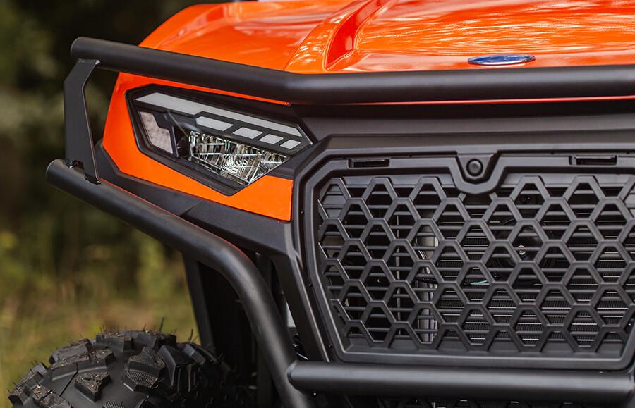 * Massiivinen etupuskuri suojaa ajovalot ja koko ajoneuvon etuosan vaurioilta, joita törmäykset johonkin voivat aiheuttaa.