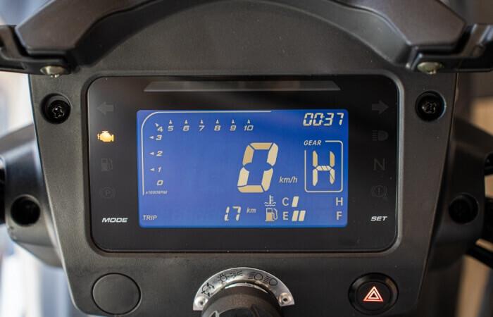 * Sinisellä taustavalolla varustettu monitoiminen LCD-näyttö tarjoaa kaikki tärkeät tiedot: nopeus, kierrosluku, ajetut kilometrit, valittu vaihde ja vetotila, jäähdytysnesteen lämpötila sekä polttoainetaso.