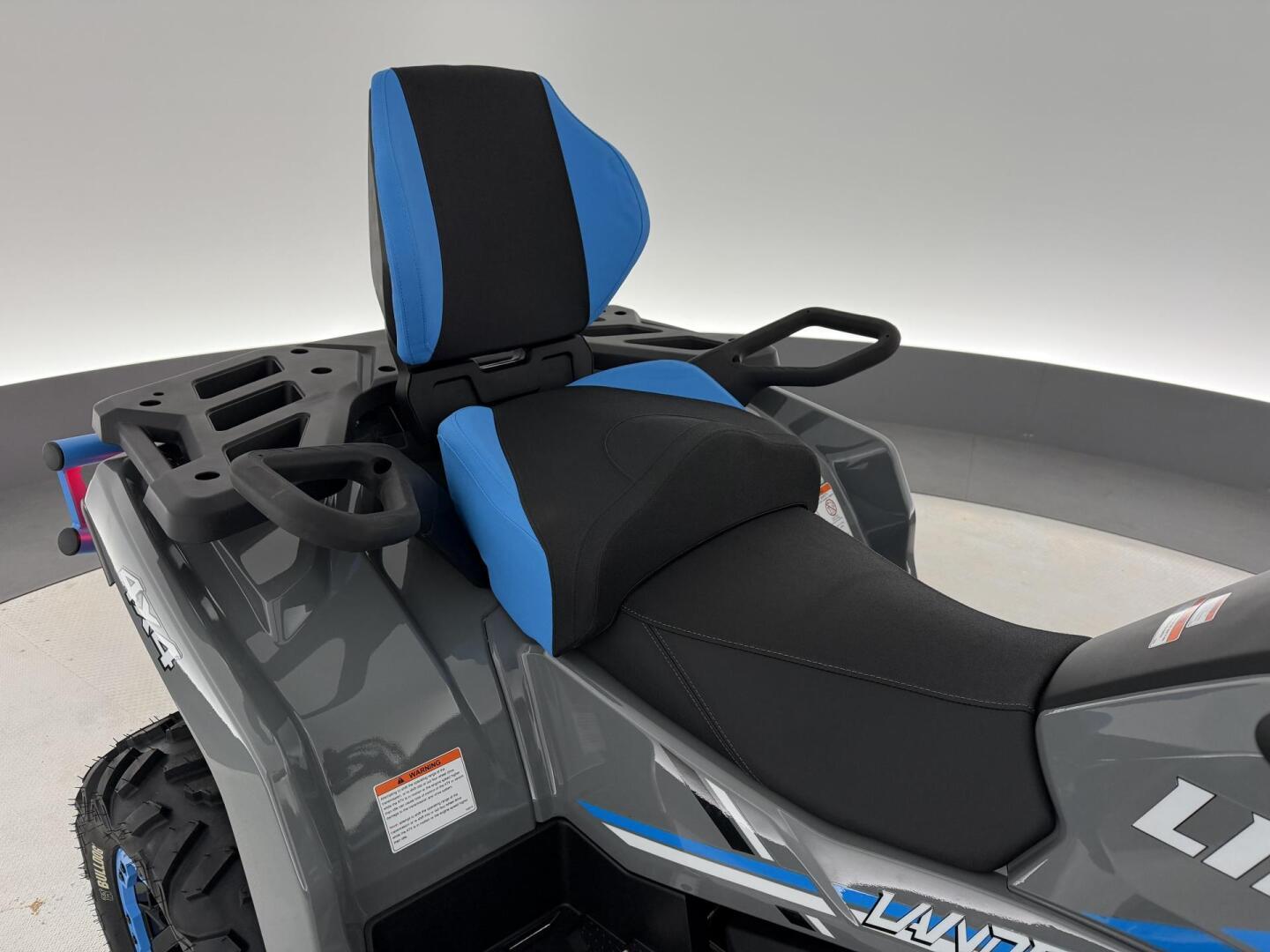 * Ergonomisesti muotoillut istuimet takaavat ajomukavuuden vaikka päivä venyisi pitkäksi. Pidempi alusta tarjoaa runsaasti tilaa matkustajalle, joka saa käyttöönsä korotetun istuimen selkänojalla ja tukevilla käsikahvoilla, mikä lisää matkustusmukavuutta ja turvallisuutta. Laadukas, säädettävä jousitus takaa vakaan ja pehmeän ajon myös vaikeassa maastossa.