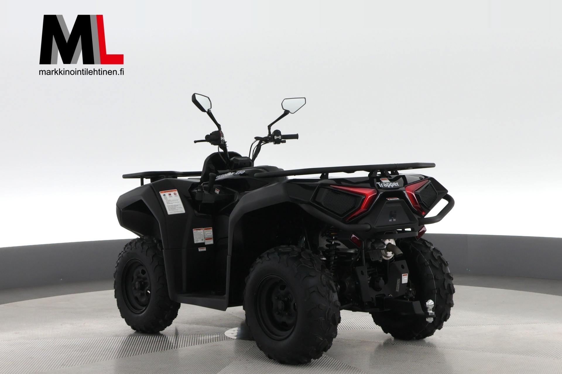 Trapper Guardian 450 on fyysisesti pienempi kuin muut mallit, mikä tekee siitä helpommin käsiteltävän ja sopivan ahtaisiin tiloihin. Tämä malli tarjoaa erinomaisen suorituskyvyn ja mukavuuden, mikä tekee siitä ihanteellisen sekä työ- että vapaa-ajan käyttöön. Trapper Guardian 450 -mallissa on 400cc 4-tahtinen, 1-sylinterinen SOHC-moottori, joka tuottaa 31 hevosvoimaa 7000 rpm:ssä ja 32 Nm vääntöä 6000 rpm:ssä. Tämä malli on rekisteröity kahdelle henkilölle.