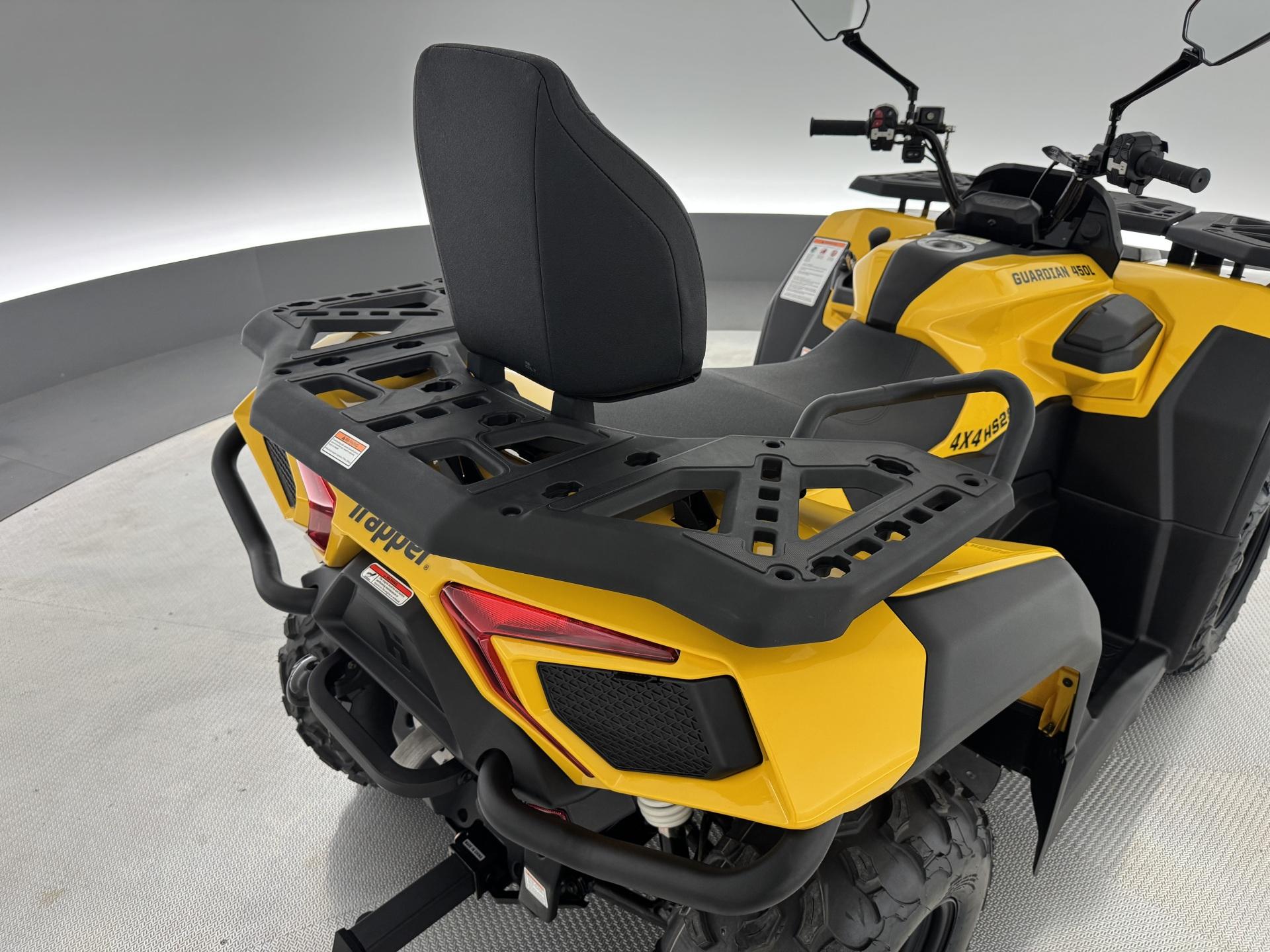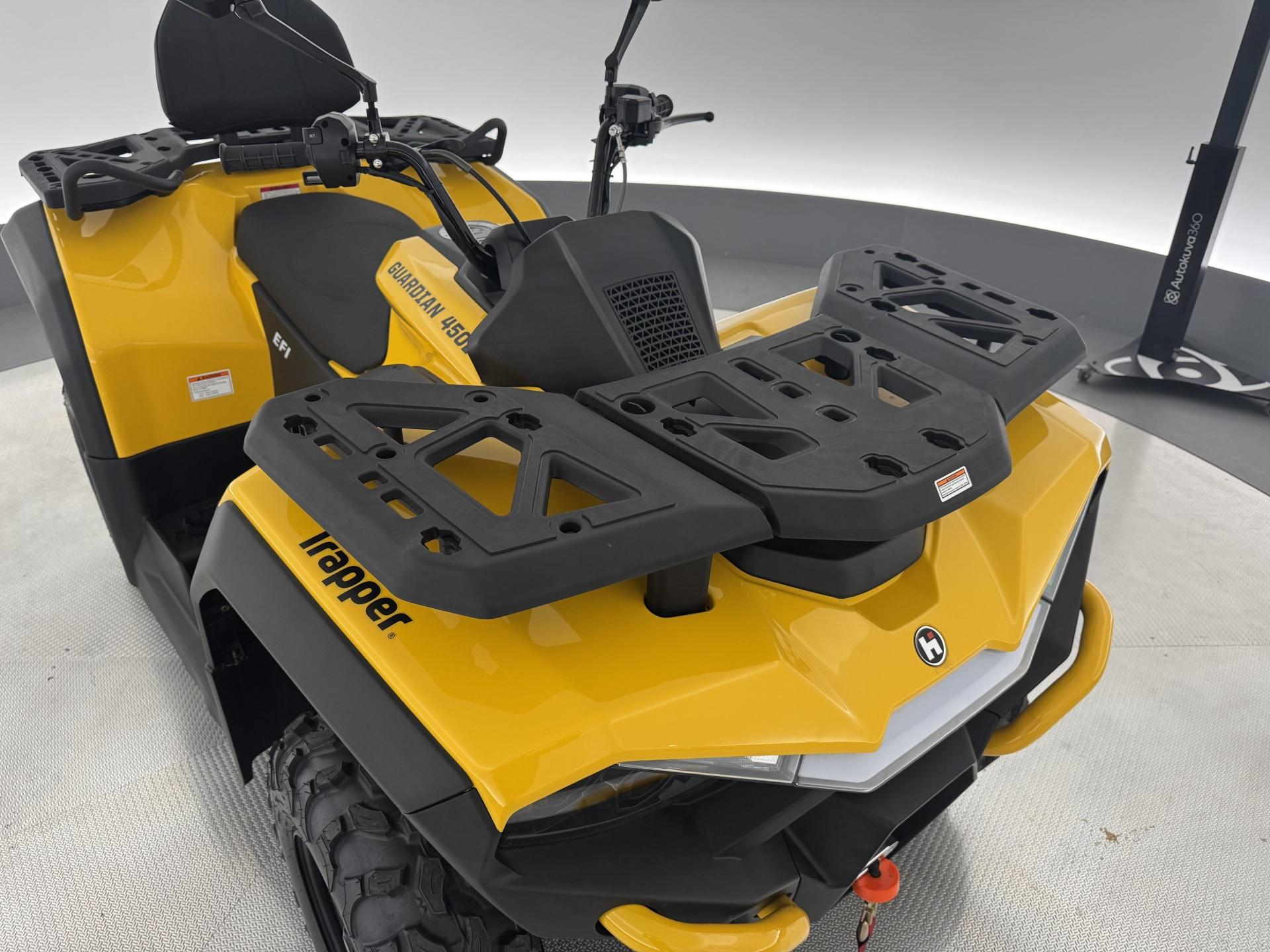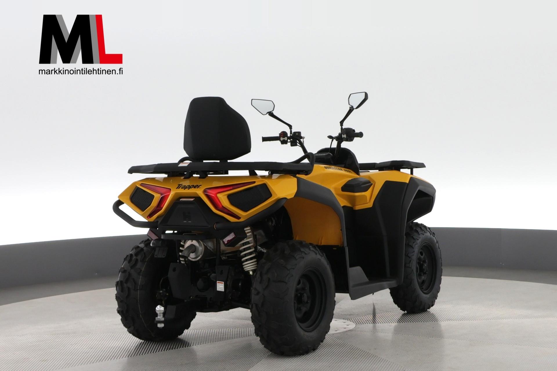 Trapper Guardian 450L on erinomainen valinta monipuoliseen käyttöön. Tämä malli tarjoaa erinomaisen suorituskyvyn ja mukavuuden, mikä tekee siitä ihanteellisen sekä työ- että vapaa-ajan käyttöön. Trapper Guardian 450L -mallissa on 400cc 4-tahtinen, 1-sylinterinen SOHC-moottori, joka tuottaa 31 hevosvoimaa 7000 rpm:ssä ja 32 Nm vääntöä 6000 rpm:ssä. Tämä malli on rekisteröity kahdelle henkilölle. Lisäksi siinä on kahvansuojat ja matkustajalle selkänoja.