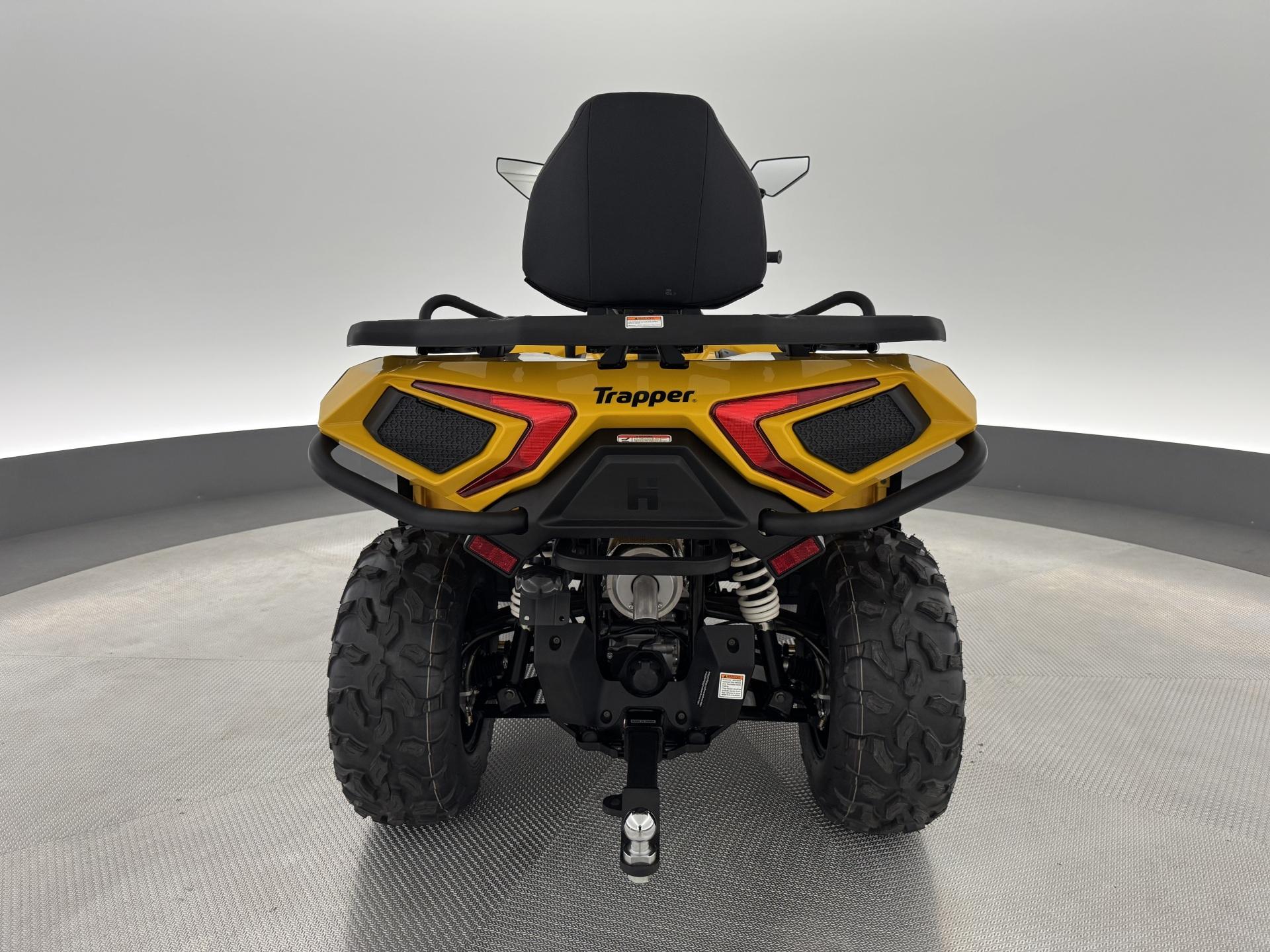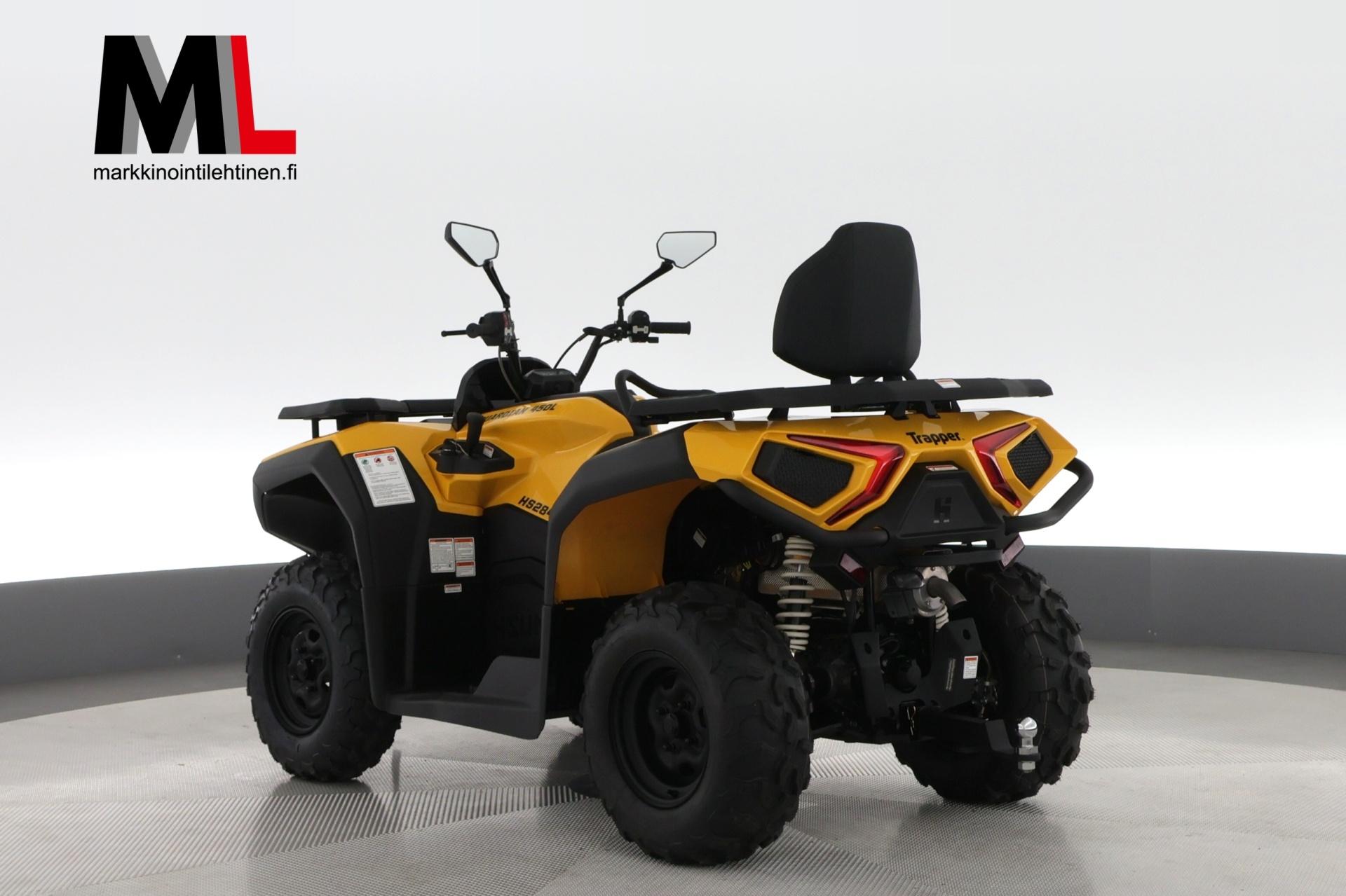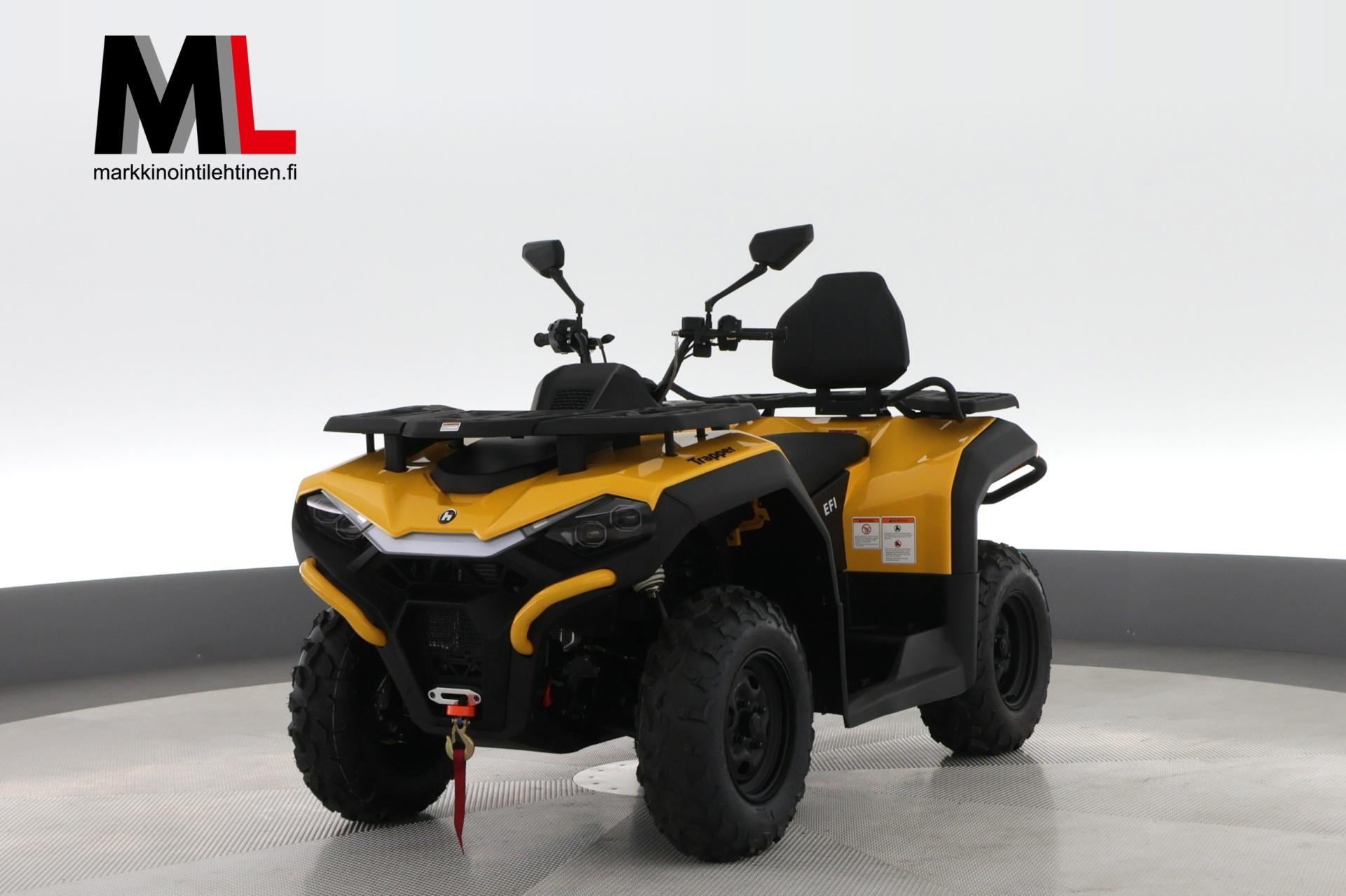 Trapper Guardian 450L on erinomainen valinta monipuoliseen käyttöön. Tämä malli tarjoaa erinomaisen suorituskyvyn ja mukavuuden, mikä tekee siitä ihanteellisen sekä työ- että vapaa-ajan käyttöön. Trapper Guardian 450L -mallissa on 400cc 4-tahtinen, 1-sylinterinen SOHC-moottori, joka tuottaa 31 hevosvoimaa 7000 rpm:ssä ja 32 Nm vääntöä 6000 rpm:ssä. Tämä malli on rekisteröity kahdelle henkilölle. Lisäksi siinä on kahvansuojat ja matkustajalle selkänoja.