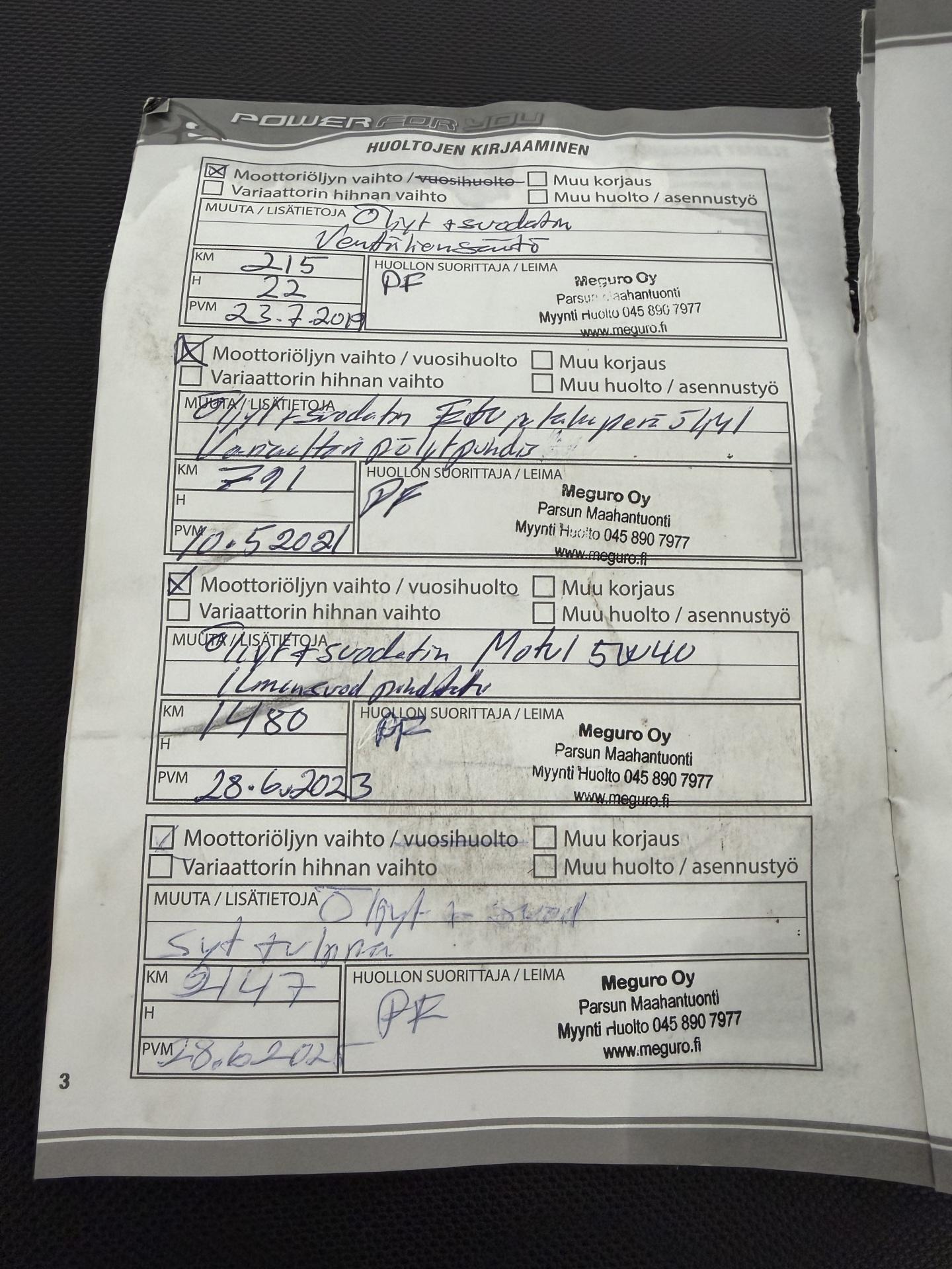 Kaikki automme on huollettu maahantuojan huolto-ohjelman mukaisesti ja tarvittaessa myyjämme toimittaa sinulle lisätietoja auton huoltohistoriasta.
