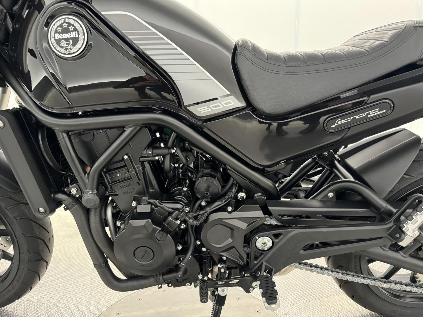 * Näyttävä teräsputkirunko ympäröi Leoncinon moottoria, antaen pyörälle optimaalisen painojakauman sekä jämäkän ajotuntuman. Leoncino on helppo ja mukava käsitellä, oli kuskin penkillä sitten aloittelija tai kokeneempi motoristi.